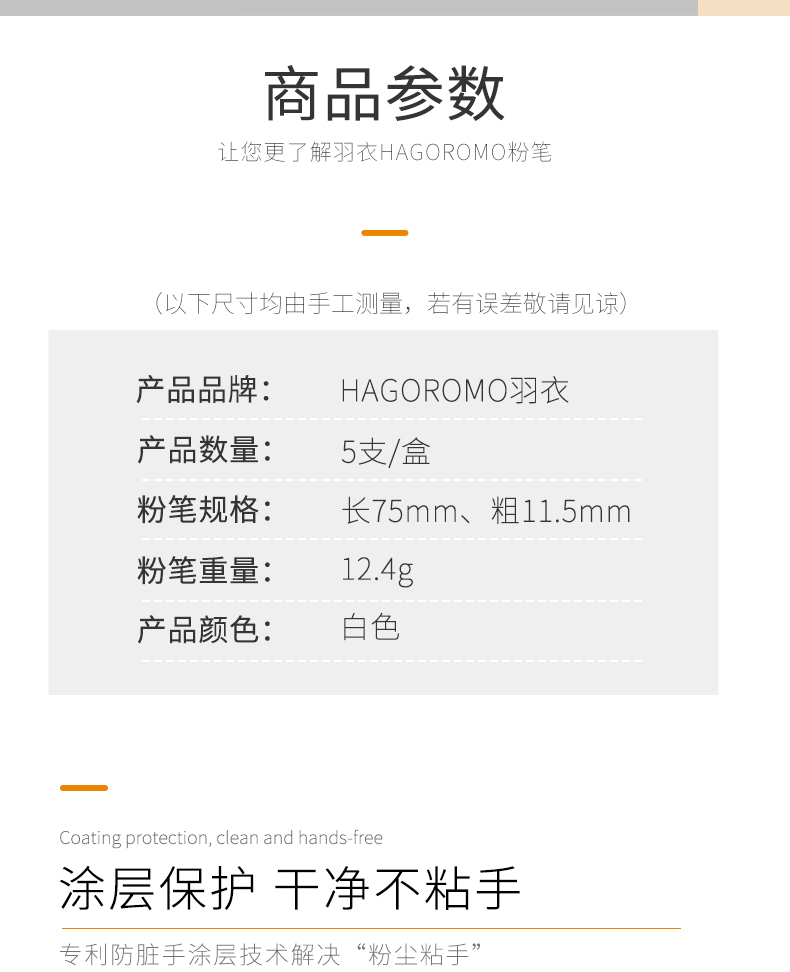 粉笔规格:长75mm、粗11.5mm