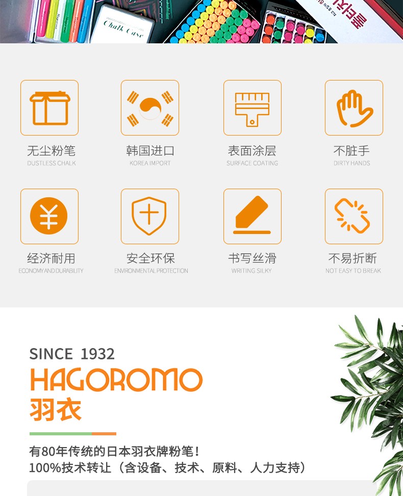 羽衣橙色粉笔72支/盒