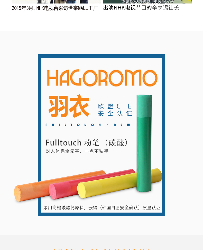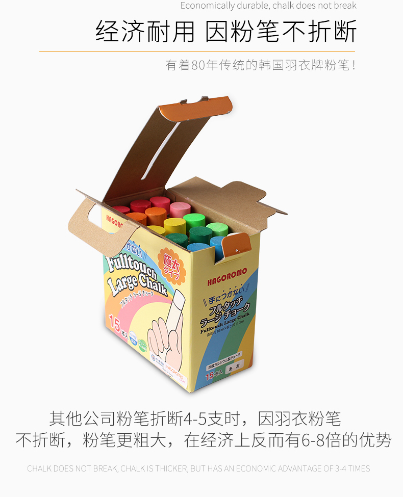 羽衣大号混色粉笔15支/盒