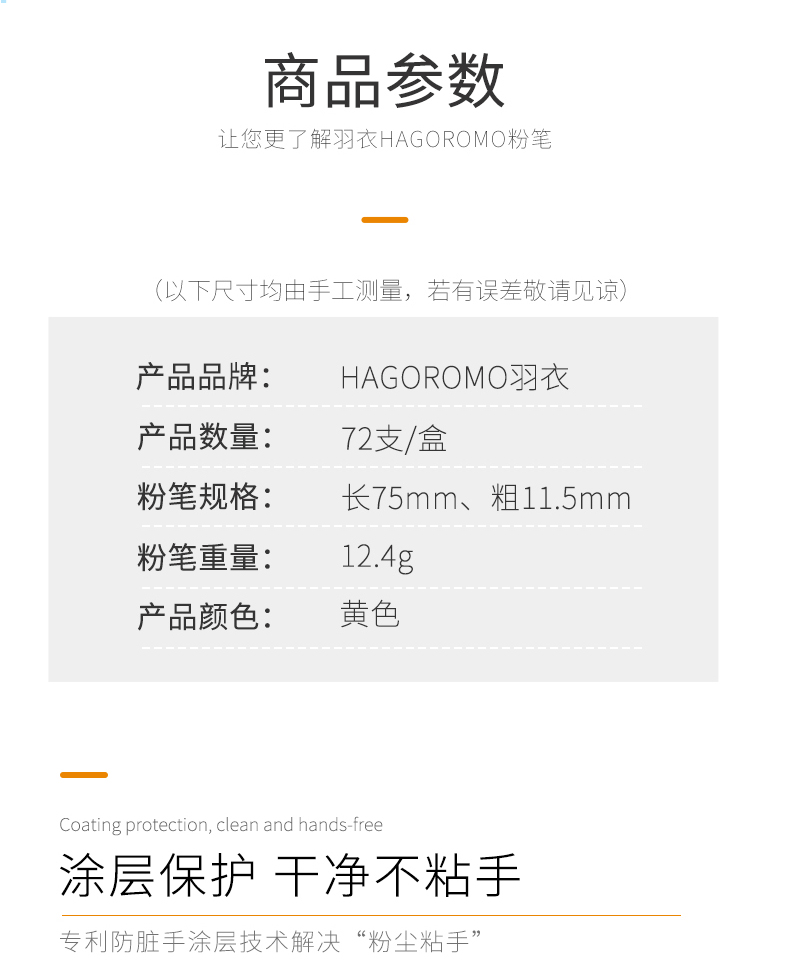 粉笔规格:长75mm、粗11.5mm