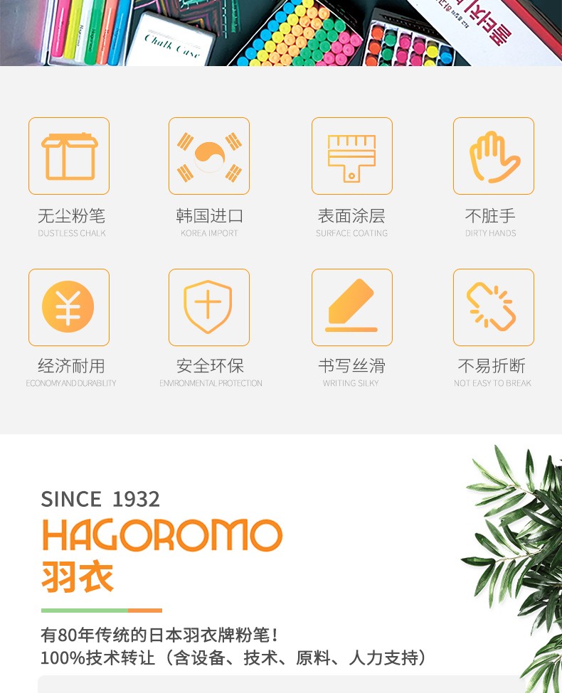 羽衣橙色粉笔72支/盒